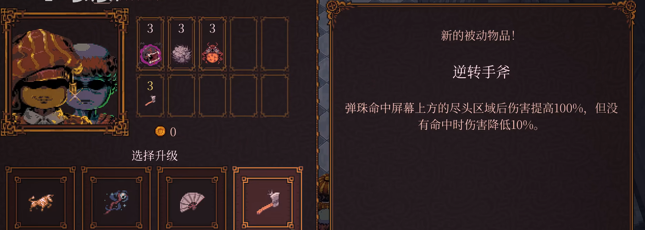 针对这一特性,角色养成路径需优先聚焦输出补强。开局阶段的被动词条搭配尤为关键,推荐首选“育母”与“旋转手斧”两项。前者可在原有弹射基础上额外触发一次弹道分裂,提升整体覆盖率与多段伤害频率;后者则专门强化边缘区域弹珠的伤害数值,契合富贾惯用的贴边站位打法。两项词条协同作用后,可有效缓解前期DPS不足的问题,使刷图节奏趋于平滑。