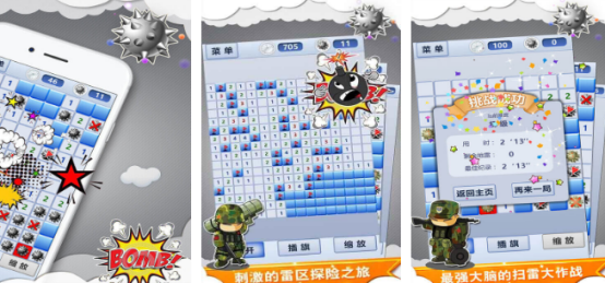 在简约的游戏画面当中,比较锻炼的就是大家的思维能力,更锻炼大家的推理能力。其中还有多种不同难度的等级,从初级再到顶级等等,大家可通过标记或者是缩放的方式展开一场刺激的扫雷大作战。核心的任务就是通过点击屏幕的方式触发各种带有数字的方块,当成功分开数字之后就可以继续挑战游戏,但是一旦触碰雷区后就会导致游戏失败。