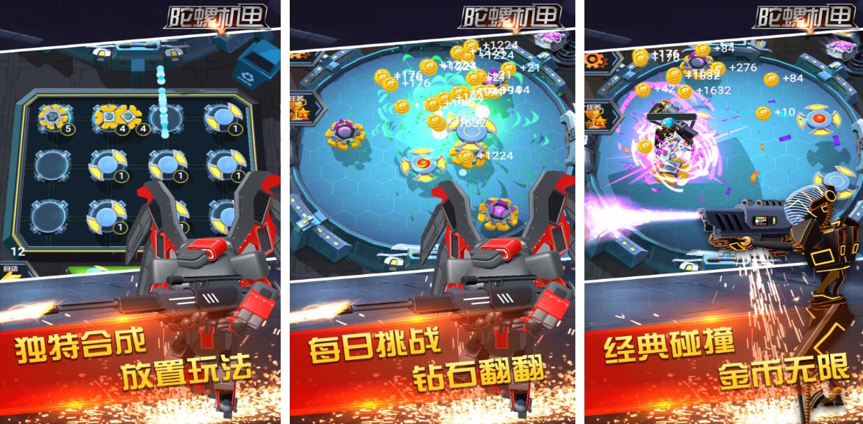《陀螺机甲》将旋转玩法与机甲元素融合在一起,整体来说充满了科幻风,玩家可以通过合成的方式来提高陀螺的等级,然后利用陀螺旋转模式进行战斗。战斗时当陀螺的怒气值满额后,还可以召唤机甲来进行战斗,且每次战斗时的特效也相当充足,视觉体验感特别好。此外,游戏还提供了多种不同外观的陀螺,玩家可以根据喜好任意选择。