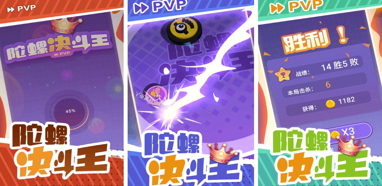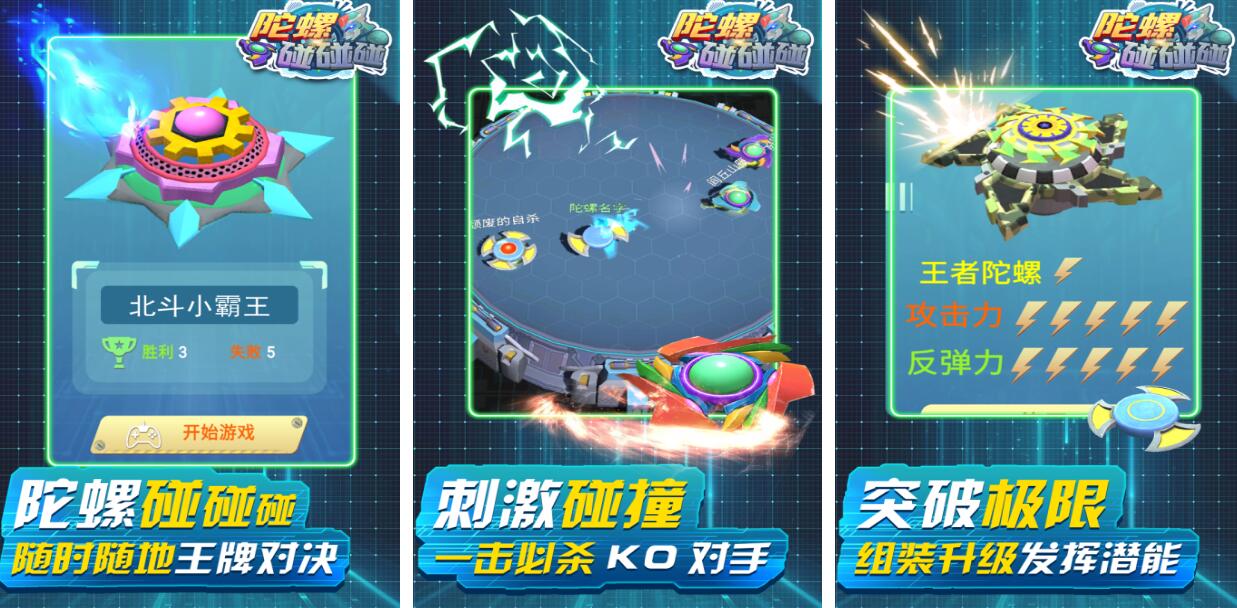 《陀螺决斗场》的核心玩法就是操纵陀螺与其他玩家进行决斗,想要获胜则可以通过碰撞和技能释放的方式来攻击对手。手游支持双人实时匹配,玩时可以和同等段位玩家一同竞技。为了区分战力,还设有段位系统,青铜和王者全部都会根据分数展现。玩的过程中还支持自由改装陀螺零部件,玩家可以打造出一个独一无二的陀螺。