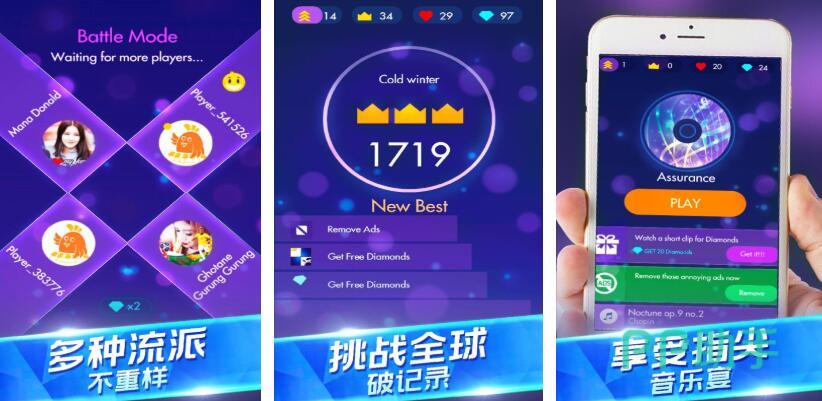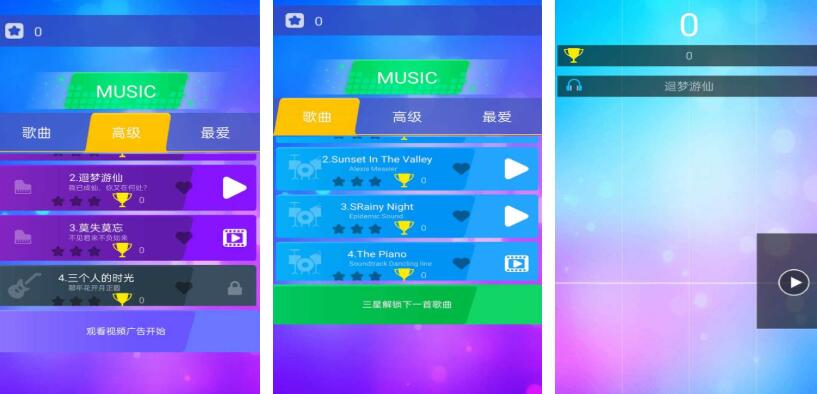 《开心钢琴块》需要拥有一定的反应能力才可以顺利通关,游戏开局后,屏幕上方会不断的掉落各种类型的钢琴键,只有快速点击它们可以才可以弹奏出美妙的乐曲。游戏内的曲库相当丰富,除流行音乐外,还有古典音乐以及很多知名的国外乐曲,玩时可以根据喜好来挑选不同的曲目进行挑战。虽然采用的是简洁的q版画风,但总体来说还是拥有一定的沉浸感。