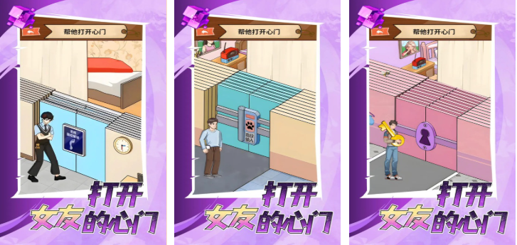 本作是款与女友为主题开发的模拟解谜类手游,主要的玩法就是想办法打开女朋友的芳心,独特的开门主题任务和恋爱气氛塑造都是亮点,卡通原画标新立异带来的视听反馈也不错,萌系卡通主题的UI展现带来的观赏性拉满,更多的恋爱目标和解谜设定给玩家们留下了不可磨灭的印象。