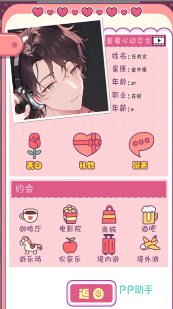 整体采用了大家熟悉的动漫卡通画风,看起来亲切又好看,大家可以和自己喜欢的角色进行日常沟通。用聊天的方式慢慢拉近彼此的距离,在游戏里设计了多条不同的故事走向,后续会如何发展,完全取决于玩家在过程中做出的选择。我们能和喜欢的角色一起经历温馨又浪漫的小事,可以一起欣赏漂亮的烟花,也可以一起完成对方喜欢的小事,体验简单又甜蜜的相处时光。