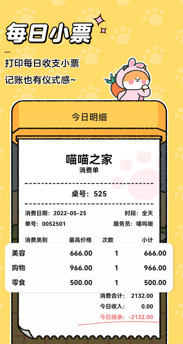 将行为心理学融入产品设计,用轻游戏机制提升长期使用黏性。每次完成记账,随机触发猫咪来访事件,收集图鉴可解锁角色背景故事与互动动画。操作流程压缩至两步:选择类型→输入金额,全程无跳转。所有统计图表保持专业级数据表达精度,云同步免费且不限容量,支持跨设备无缝续记。每日签到赠送装饰道具,用于个性化布置虚拟猫屋空间,强化正向反馈闭环。