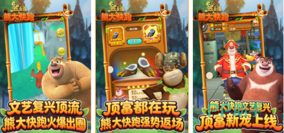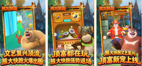 根据儿童熟悉的动画熊出没正版授权改编而成的跑酷游戏,完美移植动画当中的经典场景和特色角色,选择熊大熊二,光头强,体验原版配音,游戏场景大量取材于动画,有清新又自然的森林,还有充满复古风的古镇,营造出熟悉的视觉效果。控制你喜欢的角色,来躲避光头强设置的陷阱和障碍。