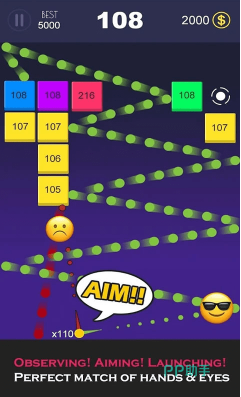 核心体验聚焦于蓄力释放的时机把控。玩家长按底部发射装置积蓄能量,松手后小球依当前力度自动升空撞击目标。随着砖块被逐个击破,弹球体积同步增长,撞击威力随之提升。关卡中随机出现特殊球体,如分裂型可生成多个子球同步攻击,穿透型则能直线贯穿多层障碍,大幅提升清屏效率。清脆的音效反馈强化操作沉浸感,短时游玩即可获得显著解压效果。