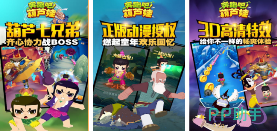 基于国产经典动画IP打造,高度还原七位葫芦娃人物形象、技能特性与标志性台词。游戏融合横版闯关与纵向跑酷双机制,穿插原著经典桥段如“火娃喷火破障”“水娃引水清场”等特色交互。美术采用3D渲染技术,场景建模贴合动画原作风貌,色彩饱和度高,光影层次细腻,整体呈现兼具怀旧质感与现代表现力。