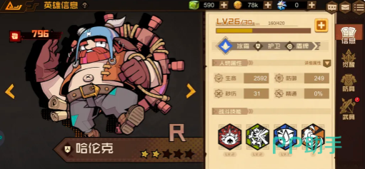 哈伦克为冰系护盾型坦克,主打前排承伤与战术控制。其大招不仅可造成3秒群体眩晕,还附带寒冰减益,有效限制敌方行动节奏。作为纯防御向角色,成长曲线平滑,资源消耗低,成型速度快,能为后排输出构建安全输出环境。尽管大招作用范围有限,但在开荒期地图结构与敌人密度条件下,完全不影响实战效能。