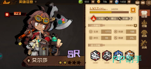 艾尔莎是火系输出型角色,初始即可获得,属于低门槛高回报的过渡核心。其主动技能可投掷斧头对目标造成6秒眩晕,对Boss战具有显著控场价值;配合燃烧瓶触发的持续灼烧效果,可稳定激活必暴击机制,实现伤害倍增。角色碎片可通过日常任务免费获取,升星无抽卡依赖,养成压力极小。虽群攻能力有限,但前期清图与单体压制表现扎实可靠。
