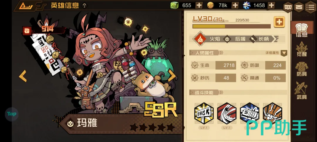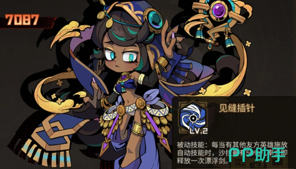 功能性阵地支援型英雄。大招展开摊位,为队友提供增伤或减伤类增益效果;被动效果为:击退敌人后恢复自身技能资源,属于需配合阵型与时机使用的战术型角色。
