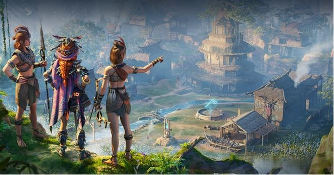 在美术风格层面,《荒野起源》大胆融合原始部落文化与高度机械化的未来废土设定。看似对立的视觉语言——粗粝图腾纹样与精密齿轮结构、藤蔓缠绕的巨构建筑与锈蚀蒸汽管道——在实际呈现中形成独特张力。这种反差并非割裂,而是通过统一的光影逻辑与材质系统达成有机共生,赋予世界更强的叙事可信度与沉浸感。