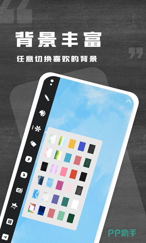 主打自由书写与创意表达,提供圆珠笔、粉笔、铅笔、马克笔四种模拟笔触,适配不同书写习惯与视觉偏好。内置多类背景模板(含田字格、米字格、拼音格等),亦支持空白画布模式;所有创作内容可一键保存至本地相册,便于回溯练习轨迹或整理学习档案;同样适用于成人会议记录、教学板书及碎片化笔记整理。