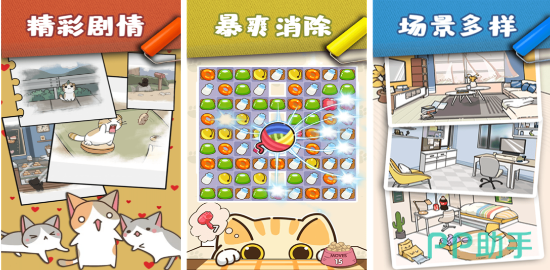 创新融合模拟经营与三消玩法:玩家需通过消除关卡获取金币与建材,扩建猫舍设施;同时照料入住猫咪的饮食起居,满足其玩耍、休息、社交等多维需求。建筑系统含猫爬架、窗台观景台、自动喂食器等24种功能组件,每种组件影响不同猫咪属性成长曲线。
