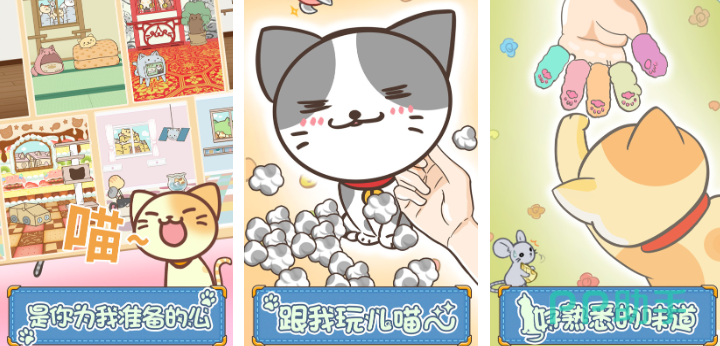 以触觉与听觉沉浸为核心卖点,UI界面采用毛绒质感纹理设计,猫咪呼噜声、踩奶音、尾巴甩动声均经真猫采样处理,支持3D空间音频输出。玩家通过梳毛、剪指甲、洗澡等交互动作维持猫咪清洁度与亲密度数值,不同毛色对应差异化护理难度,长毛猫需增加梳毛频次以避免打结。