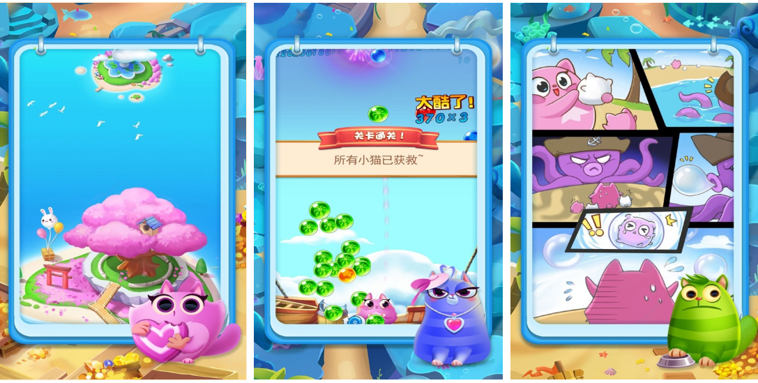 基于经典泡泡龙机制开发,玩家发射彩色泡泡匹配三颗及以上同色球达成消除,每关设置特定救援目标(如释放被困猫咪、清除障碍物)。关卡总数超500关,含移动障碍、冰冻泡泡、连锁爆炸等15种特殊元素。剧情采用分镜漫画形式推进,共12章主线故事,围绕“流浪猫救助联盟”展开协作叙事。
