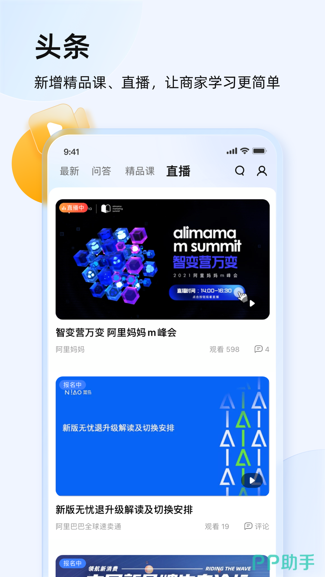 面向淘宝、天猫、1688等平台商家的一站式经营工作台,集成商品上架(支持拍照识别自动填充参数)、订单管理、客户沟通、数据分析、营销工具等模块。内置智能定价建议、流量诊断报告与直播带货中控台;“千牛头条”持续输出电商运营方法论、平台规则解读及头部商家实战案例,助力中小经营者降本增效。
