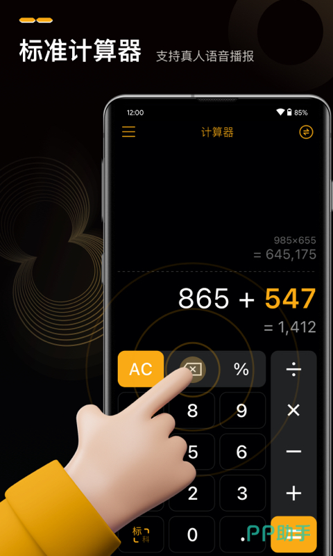 面向财务人员、学生及日常高频计算用户的高精度语音交互计算器。支持连续语音指令输入与结果真人语音播报,运算过程可随时回溯修改;内置科学计算模式、单位换算、汇率查询及大数阶乘等扩展功能;界面无冗余元素,关键按钮尺寸适配单手操作,提示音效提供多种风格切换选项,兼顾实用性与无障碍体验。