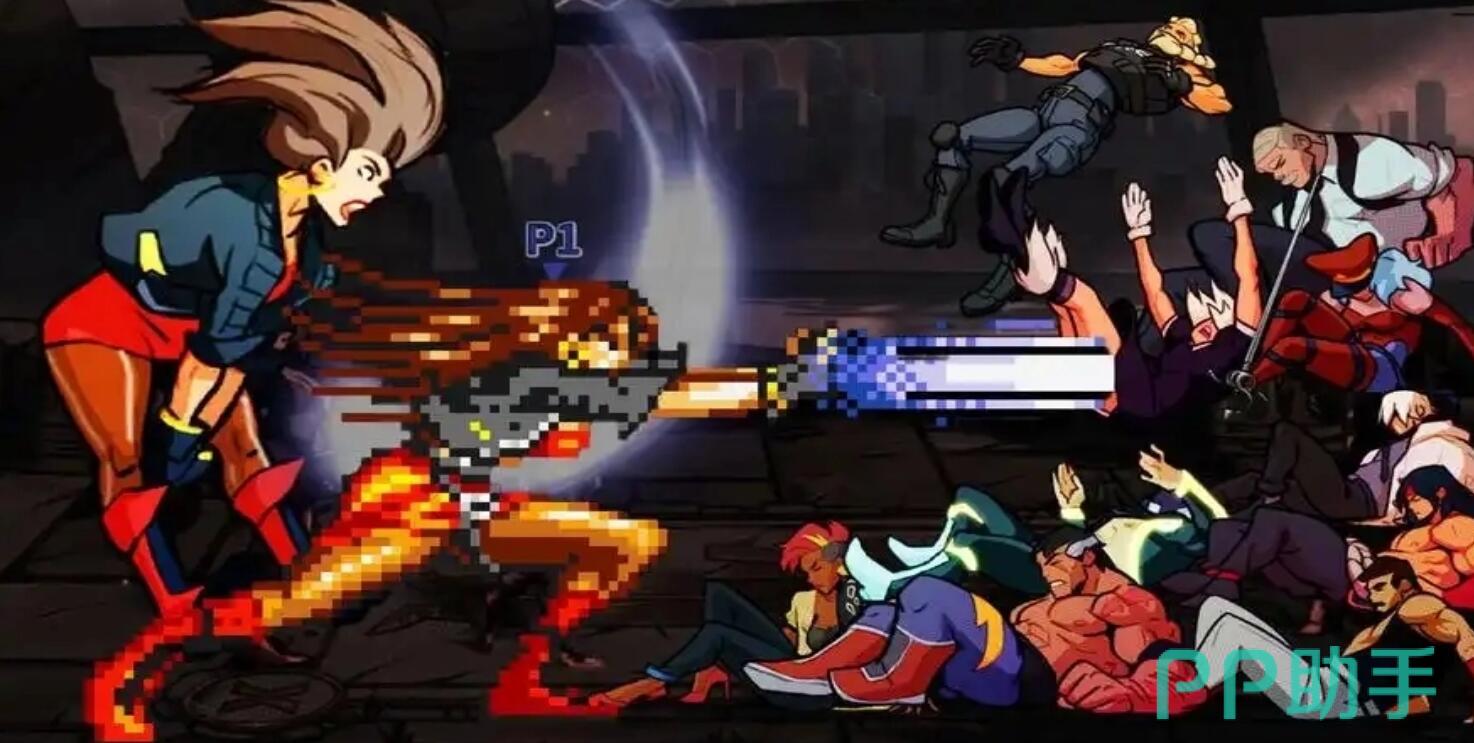 本作采用横版卷轴结构,背景设定于赛博朋克都市街区,玩家操控角色沿固定路径推进,逐关挑战Boss。战斗系统融合跳跃、轻重攻击与方向组合,形成多样化连段。击败Boss后掉落宝箱,内含武器、消耗道具及恢复类食物,强化资源管理维度。美术风格复刻90年代像素美学,主角红衣造型鲜明,整体呈现强烈复古格斗氛围。