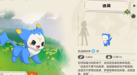 游戏里玩家可以获取的宠物非常多,每个都有不同的特性,刚进入游戏系统会给出三个主宠角色让玩家选择,不需要费心捕捉,就能直接拥有伙伴,三个主宠分别是水蓝蓝,火花和喵喵,水蓝蓝是水系的控制角色,火花主打的是火系爆发输出,喵喵在游戏里是草属性的回血宠物,玩家可以根据自己的需求先选择一个主宠,开启挑战,冒险过程中完成任务还能免费获得迪莫,作为一个比较有代表性的角色,挑战过程中迪莫会使用魔法攻击,随着等级提升,还能解锁更多不同的技能。
