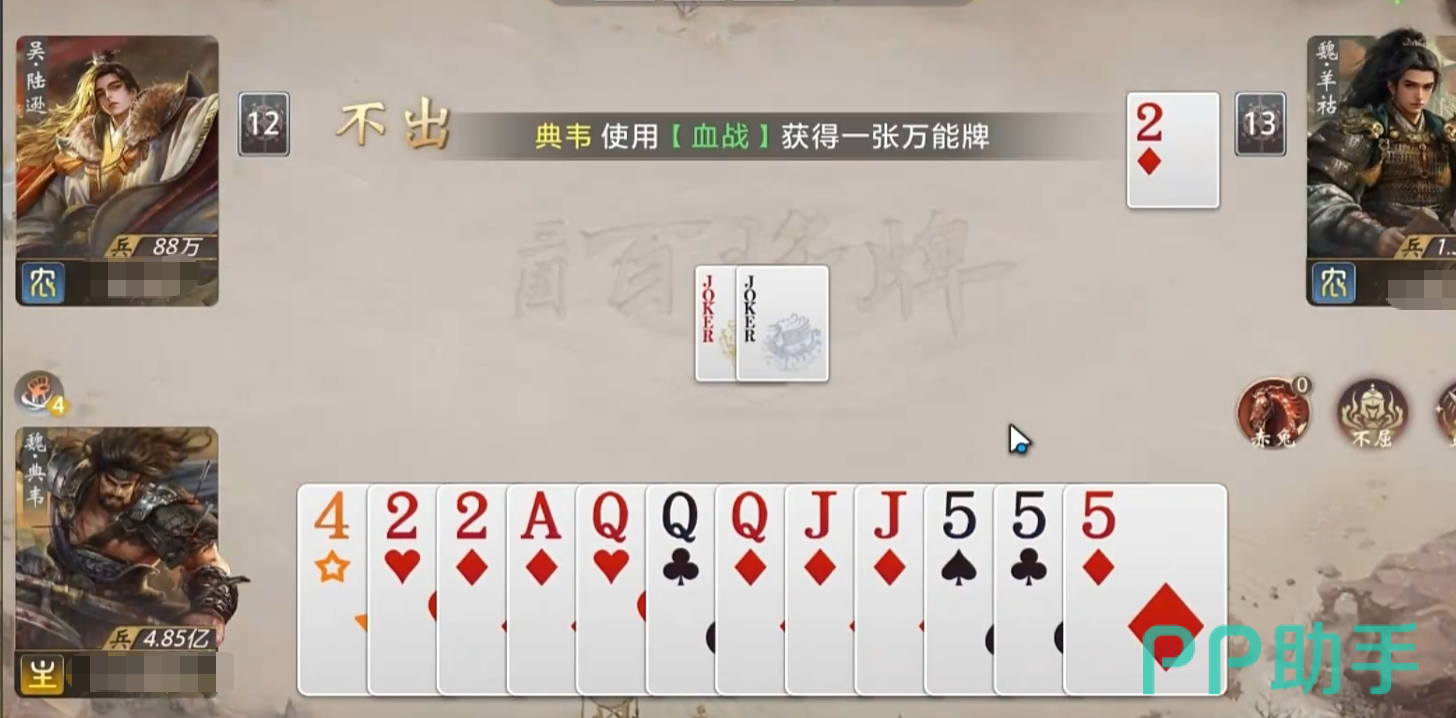 当不屈点数达到3点的时候,血战的效果就会得到加强,玩家可以立刻获得一张2。在《三国百将牌》的牌型系统当中,【2】是极为强势的一个高点数牌,可以压制绝大多数单牌,在关键时刻还能改变出牌次序。因此该时期典韦一般都会拥有较强的对局影响力。如果玩家一直保持出牌速度,就会慢慢建立起优势,中期形成稳定的压制局面。