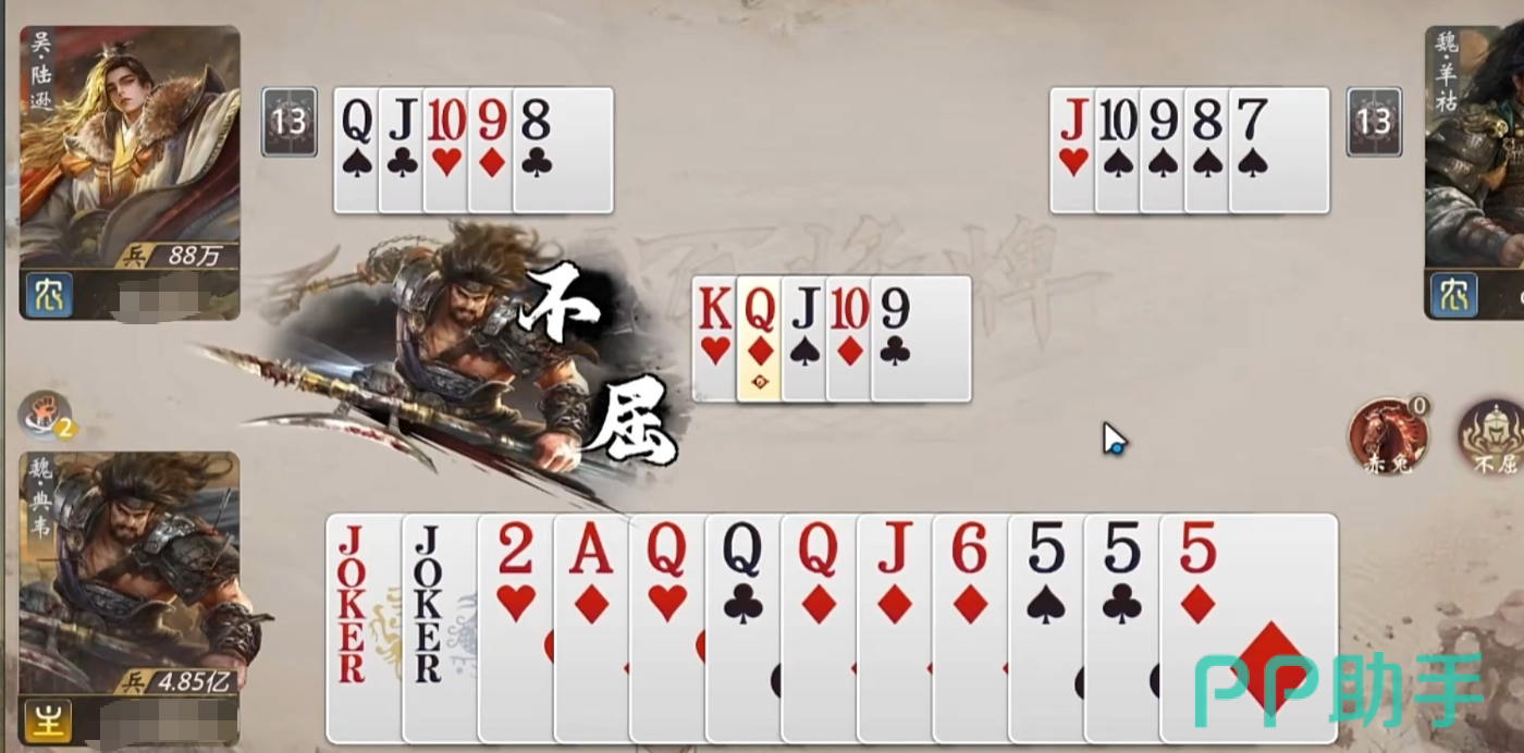 当不屈点数达到最高4点的时候,就会触发最强大的效果,获得一张万能牌。在游戏中价值很高,可以取代很多牌型的使用,在关键时可以形成顺子、对子等组合,从而灵活地改变出牌策略。万能牌对于典韦来说既可以提高出牌速度,也可以在残局时帮助玩家迅速完成收牌工作,从而使得整个战术更为灵活多变。