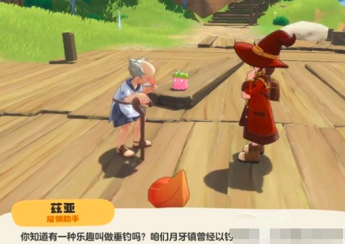 小洛克们需要先抵达月牙镇,在码头上会遇到魔法师兹亚,点击角色触发相关对话,这样会引导小洛克们体验钓鱼玩法,不过首次尝试会因为鱼饵出现错误失败,不用太过担心这也是后期触发剧情的必要尝试。根据相关的引导,将背包当中的海神花作为初始鱼饵,就可以钓上来宝箱,能够解锁”果实道具“或”双灯鱼精灵“;如果解锁的是双灯鱼,按照剧情提示玩家的正确鱼饵应当为伊贝尔的头发,此时就可以开启伊贝尔精灵的寻找之路。