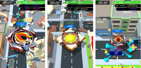 创新融合“陀螺+吞噬进化”双核心机制。玩家初始操控微型陀螺,在限定区域内主动碰撞并吸收散落资源或小型敌对单位,实现体积与转速双重成长。随着体型扩大,可吞噬目标升级,但同时面临更强大对手的围猎风险。关卡设有时间倒计、动态障碍与资源刷新点,强调生存策略与风险收益权衡。