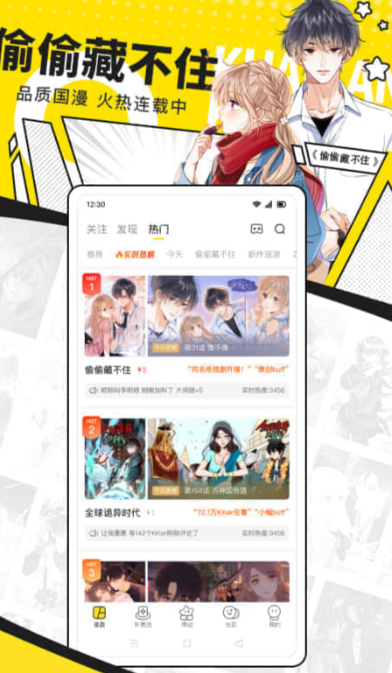 热门漫画聚集地,分类清晰找片快,不用浪费时间瞎琢磨,轻轻一点就能找到自己想看的内容,《快看漫画》收录了大量日系热门漫画和国产优质漫画,鬼灭之刃的正版漫画在平台内完整上架,更新进度和原版保持同步,细节呈现清晰,不会出现模糊失真的问题,软件会自动记录阅读进度,更换设备登录也能同步进度,部分付费章节可以限时免费观看,降低用户的观看成本。