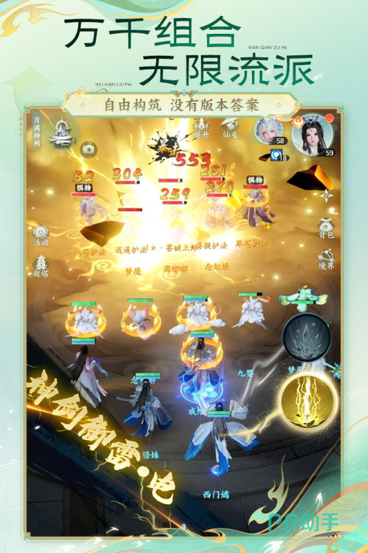 玩法自由度高,取消了固定的职业流派,可自由组合技能,还有心法符文,打造出个性化战斗风格,单点爆发,连击玩法,甚至是群伤续航,均由自己创造;
