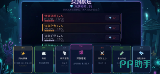 这款聚焦于深海进化生态为题材的动作型rpg游戏用以偶极高的策略玩法,以真实的海洋生物学为灵感,构造出富有极强层次的海洋技能树,从最初的单细胞发光体逐渐起步,通过进化战斗完成挑战的方式,最终发展出属于自己的特色发展路径,触发关键节点,完成进化。目前提供4种不同的进化路径,比如触手,当强化你的触手之后,可以打造出极高的爆发力,以近战攻击为题材,同时也可以选择荧光脉冲,适合全屏范围激光打击,拥有着大范围攻击模式,也可选择具有持续伤害以及群体削弱的毒素,如果想要获得极为出色的防御能力,那么可以选择甲壳增生这样的发展路径。