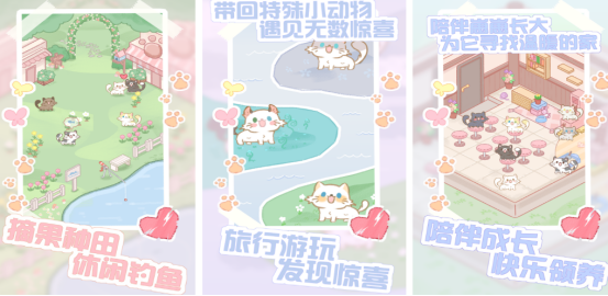 通过放置养成的方式享受乐趣,以治愈画风为题材,其核心特色就是零压力养猫与高自由度庭院布置,无需时刻在线照顾,即便在离线情况下,也有机会持续获得丰富的资源,利用碎片化时间来打开游戏,收集鱼竿又或者是填补猫粮即可,整体的操作较为简单,重要的是压力为零。
