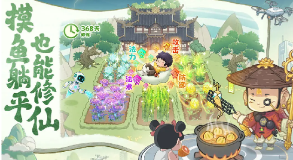 游戏比较亮眼的地方就是打破传统修仙的刻板套路,和以往打怪升级的老路子是完全不一样。玩家将成为一名仙尊,失去了神力,重新回到这个破败的道馆。需要靠积累功德去慢慢的恢复修为,这一种行善就等同于修行的设定,真的很适合那些佛系玩家。在游戏中不需要熬夜刷副本,更不需要去拼战斗力内卷,晚上可以让弟子打坐修炼,白天可以种田,还是很有治愈感的。反差萌十足的角色设计也成为了加分项,游戏中的神仙妖怪全部都会开启再就业的模式。