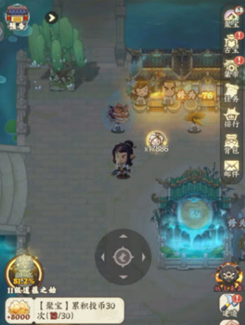 在闲暇的时刻,那不妨就去参与拍卖会,可以将成熟的千年人参王拿去竞拍,从而获取银两以及陨铁等一系列稀缺的材料,可以助力道馆发展。等到晚上之后就会变成休闲模式,白天积累的资源全部都可以变成修仙的坚实基础。玩家可以通过打坐去吸收都市的灵气,提升自身的境界,解锁更强的修仙能力。还可以挑战后山妖王,靠着合理的伙伴阵容搭配,就能打败邪祟,获得丰厚的功德奖励。伙伴搭配也是比较有讲究的,一开始可以选择将钟馗和共工放在一起,后期搭配嫦娥。