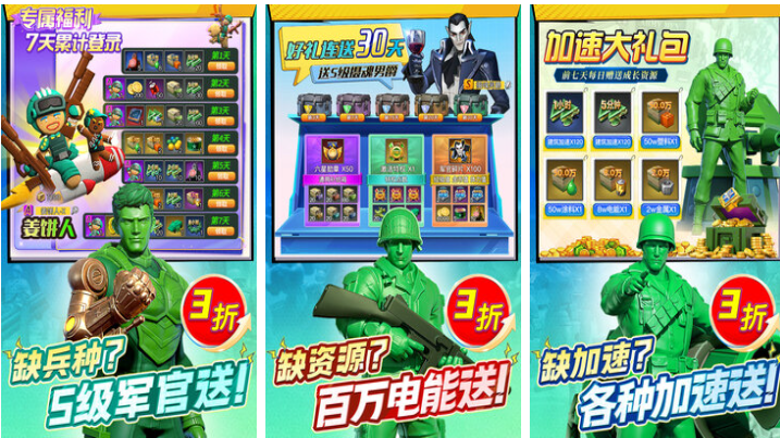 这是款加入了兵人玩具元素的免费策略游戏,建造主题的玩法加上军事类的内容很有辨识度,可使用的兵种全都是帅气的兵人小玩具,给人一种进入玩具总动员世界的既视感,你对战的目标也是毛绒玩具和机器人玩具,超快的运行速度可以轻轻松松完成战役,策略爱好者好玩具游戏粉丝不妨尝试下。
