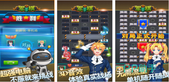 众多棋类游戏当中,军棋也是大家非常感兴趣的,无需流量,单机随开随战,采用出色的3d音效,拥有足够真实的立体战场,玩家要运用你的智慧运筹帷幄,支持四暗双明等不同的经典玩法,下载之后能够获得极佳的体验感,这里免费提供大量军团,拥有着经典的特色布局,可以直接载入并编辑保存。