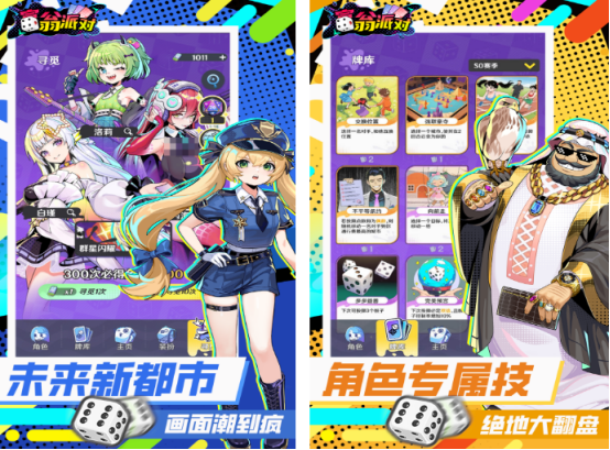 最多支持三个人可以开启的室温派对类型手游,除了可以通过卡牌对战的方式,在派对当中拥有着更出色的成绩,取得整局的胜利。也有着卡通的风格以及超高的品质,将会让玩家进入未来的新都市环境里,画面特别的潮流又炫酷,角色还有专属的技能,通过发挥其特色的能力,更能完成绝地大翻盘,单手就能够随心畅玩。