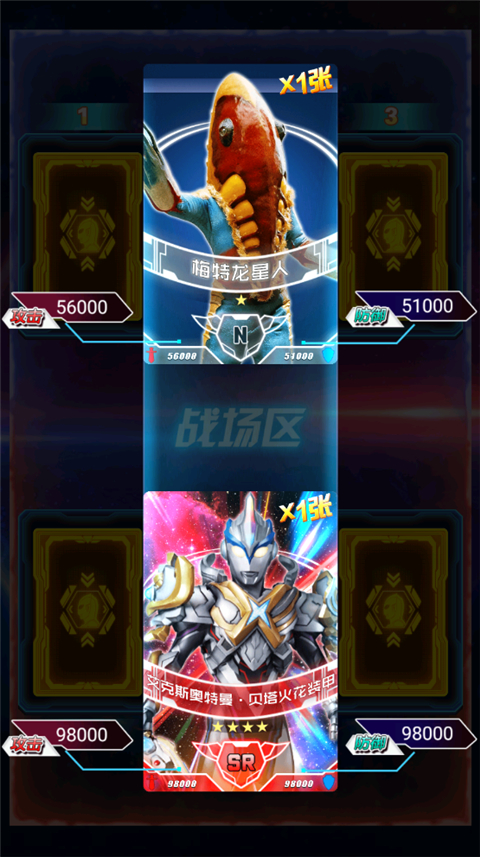 《奥特曼抽卡王》奥特曼除了具有常规的对战技能之外,游戏都额外的塑造出了更为神乎其技的战斗特技,百余名奥特曼玩家可以通过做任务,开卡包的形式去进行获取,而且游戏更是罕见的加入了不同凡响的合成玩法,设定的战斗剧情,只有奥特曼遇到特定怪兽之间才会触发。