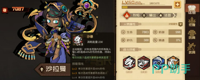 沙拉曼的自动技能“沙暴”为短CD穿透型技能,基础冷却仅7秒。当攻击路径上存在多个敌人时,每一段命中均独立结算,持续激活天罚之日被动。若目标已处于燃烧状态,该技能还将获得额外伤害加成。其被动“浮游剑”支持协同机制:每当队友释放自动技能,均有概率触发一次浮游剑攻击,使全队技能释放节奏间接转化为沙拉曼的额外输出频率。