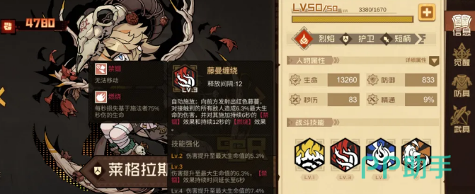 护卫位提供两种适配方案:莱格拉斯与诺儿。前者自动技能可附加燃烧效果,补足阵容燃烧覆盖率;大招具备全队减伤与生命共享机制,适合应对需要团队承伤的持久战关卡,配装侧重生命值与防御属性即可。后者则专精于爆发应对——大招提供4秒无敌帧,可精准规避BOSS关键技能;自动技附带破甲效果,在挑战高护甲单体BOSS时具有显著战术价值。诺儿需重点堆叠充能速度,确保大招可在高压节点及时释放。
