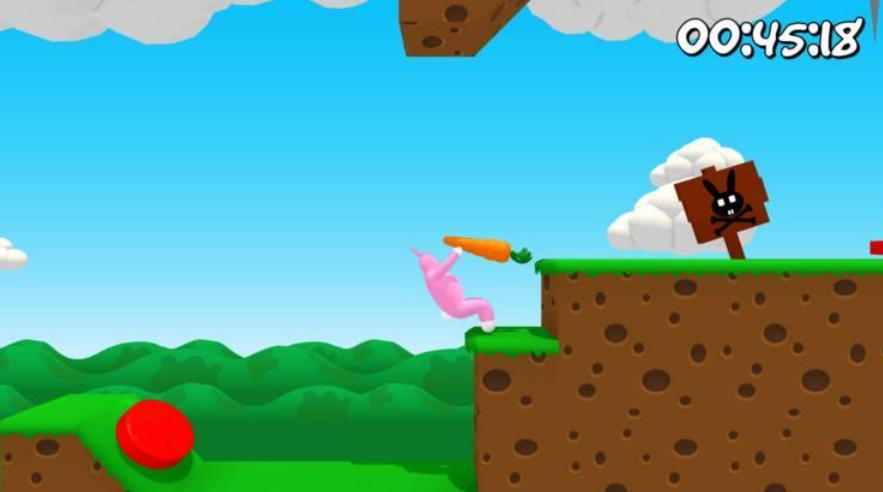 多人协作闯关类游戏,角色为拟人兔首人身造型,动作重心偏移明显,行走跳跃易失控,由此衍生大量不可预测互动。关卡含机关谜题、搬运挑战与限时逃脱等模块,强调团队配合与临场应变。操作仅需方向键与跳跃键,上手零门槛,但精通需掌握角色物理特性。