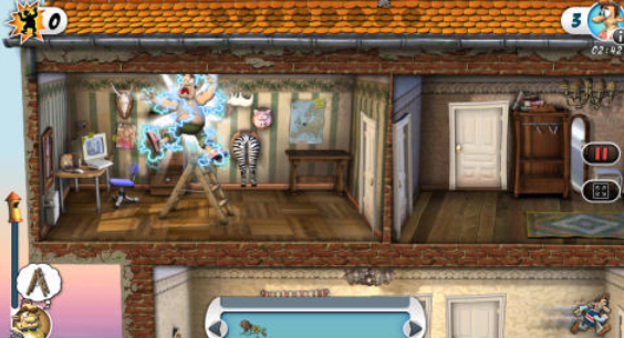 前作精神续作,美术风格升级为高清定格动画质感,场景扩展至多层住宅与庭院空间。新增时间回溯、伪装潜入、声控触发等整蛊机制,道具库扩充至50+种,支持自定义布置顺序与延迟触发条件。任务目标更强调行为链设计,如需连续触发三重机关才能达成最终恶作剧效果。