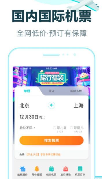 作为中国载旗航空公司的官方移动门户,该应用承载着全球航线服务能力与高端服务标准。用户可通过其预订覆盖六大洲的国航及星空联盟成员航司航班,支持按机型、座位布局、Wi-Fi配备、平躺座椅等维度筛选舱位,并查看详细客舱配置说明。定期上线“国航会员日”限时活动,开放特价机票与升舱权益;支持提前预订特殊餐食、轮椅协助、无人陪伴儿童等增值服务。
