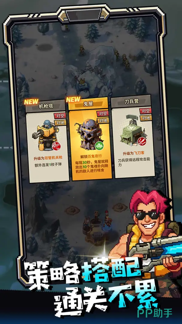 关卡设计涵盖多样化地理环境与昼夜气候系统,敌军阵营包含机械化步兵、空降突击单位及重型装甲编队等多类型作战力量。玩家可自由组合防御塔类型、部署英雄角色、升级炮台科技树,并实时调整火力覆盖范围与支援节奏,打造个性化战术流派。战斗过程强调节奏把控与清屏反馈,兼顾策略深度与操作爽感。