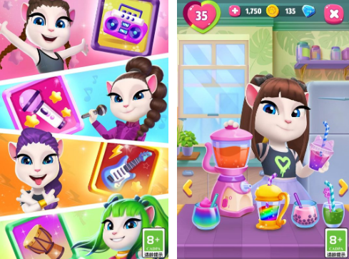 本作延续前代养成核心,聚焦安吉拉的日常生活模拟体验。玩家可通过轻触屏幕完成喂食、梳毛、换装、化妆等交互操作;支持自由布置公寓空间,涵盖卧室、厨房、阳台等多元室内场景,并可亲手制作甜点、果汁等食物道具;户外区域亦开放探索,提升沉浸感与陪伴感。