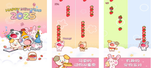 宠物二重唱以双角色协同操作为核心机制,左右屏分别控制猫犬角色完成同步节奏互动。音效设计高度拟真,咀嚼、吠叫、呼噜等细节音源均由实录采样;背景音乐采用轻快Jazz与Lo-fi Hip-hop风格,搭配Q版萌系美术,营造轻松治愈的游戏氛围。