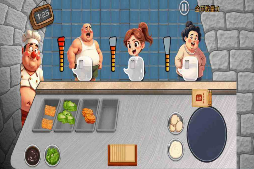 以街头煎饼摊为原型的轻量级烹饪模拟游戏,操作简洁但内容扎实。玩家需根据顾客订单快速完成面糊摊制、配料添加、火候控制及包装交付全流程。食材种类丰富,支持酱料组合、脆片增益、蛋类升级等自定义选项,每单完成均影响顾客评分与复购率。节奏明快,适配碎片化时间游玩。