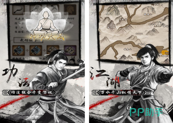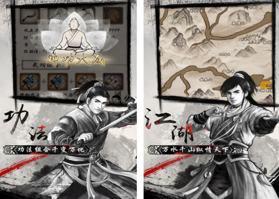 采用极简水墨风构建武侠世界观,以黑白主色调呈现传统江湖气质。游戏聚焦角色成长路径与资源管理逻辑,玩家需在有限物资条件下规划武功研习、门派投奔与事件抉择。独创“功法链”系统允许自由组合招式效果,实现属性差异化养成,强化策略纵深感与叙事沉浸感。
