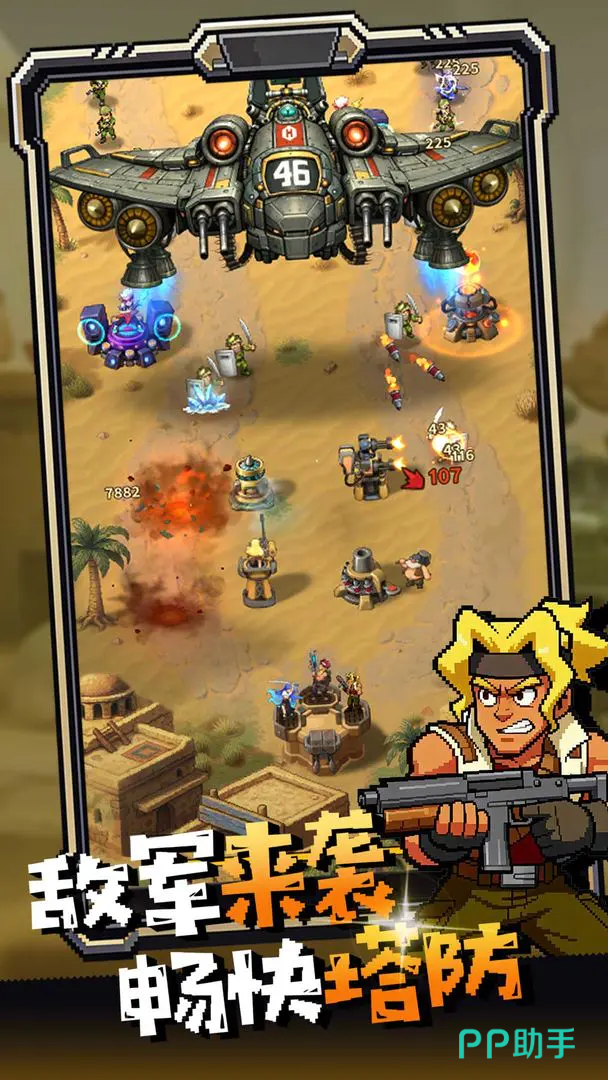 视觉层面采用低多边形+高对比色块的复古街机渲染风格,战斗演出节奏明快,单位动作带有夸张物理反馈与轻度喜剧化表现,兼顾怀旧氛围与轻松感。局内技能触发为动态概率机制,需结合敌军波次构成、地形高低差及资源刷新节奏进行临场判断,胜负关键取决于策略预判与即时响应能力。此外,游戏内置协同作战模式,支持好友组队挑战高难度关卡,进一步延展策略协作维度。