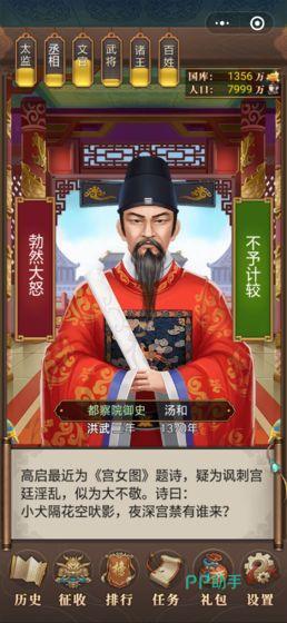 明朝的故事背景作为游戏当中的主要内核,管理自己的国度便是主要的任务,以文字为主的元素作为其中的体验玩法,《我的大明帝国》这款手游还会见到周边各个国家的势力,游戏内会去处理自己的朝政,并且组建强大的军队来进攻和防御。