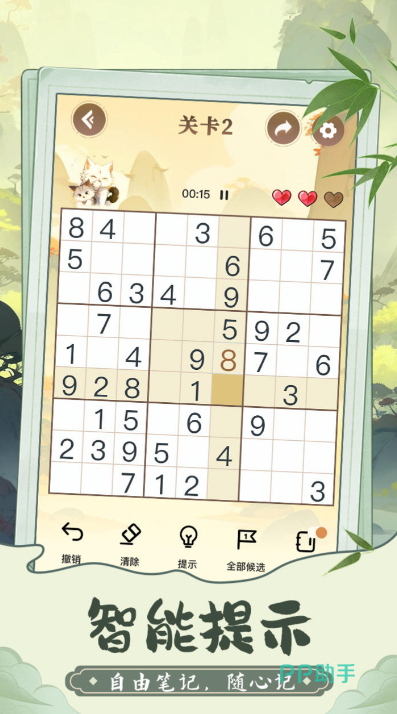 这款数独游戏非常考验大家的逻辑,玩的时候,大家要仔细的观察清楚,屏幕上是九宫。不管里面的是小格子还是整个大格子,横排竖排里一到九这几个数字都不能重复,只要有一个数字重复,这个关就过不了,必须要重新去调整。它和普通的数独游戏不同,不只是关卡多,还有很多不同的皮肤可以换,每一次闯关完成之后能够达到很多的奖励,用这些奖励就可以解锁更多山海经里面的小怪兽,解锁之后会非常的有成就感。